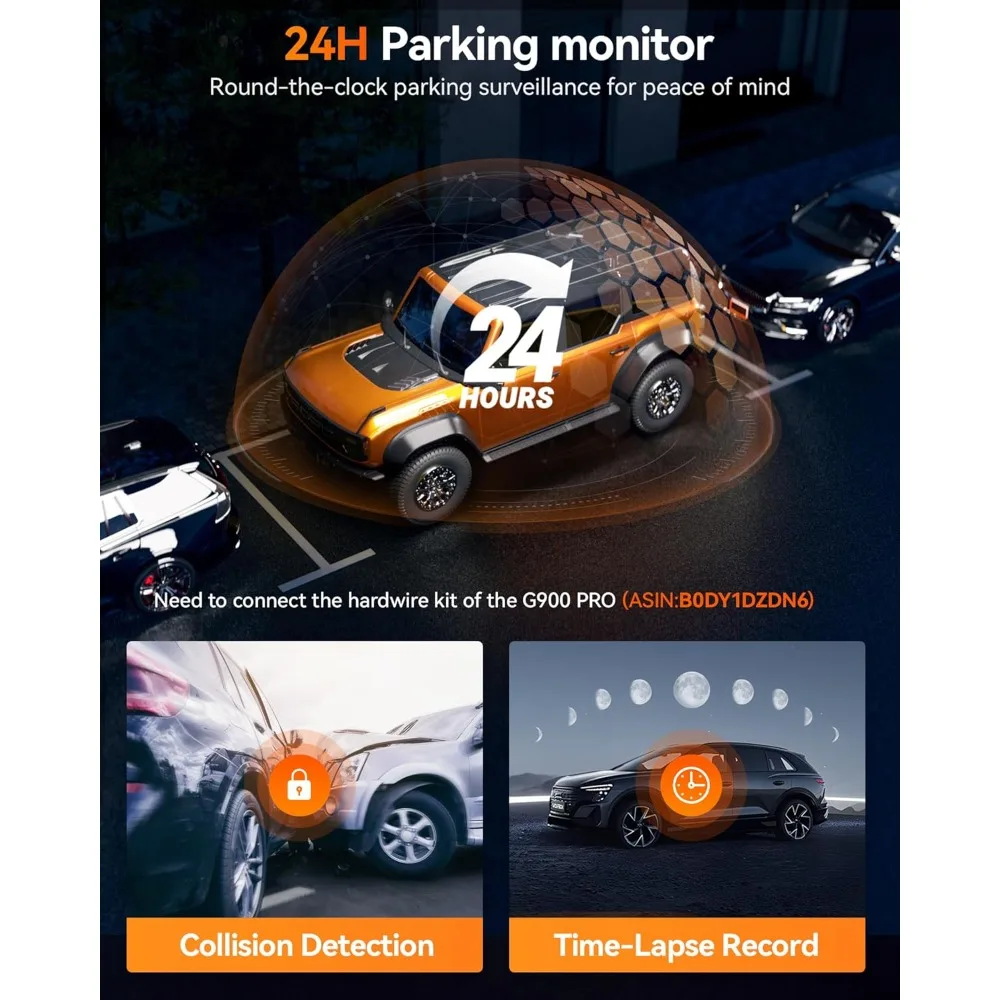 • [Front 4K and Rear 2.5K] G900 PRO rear view mirror camera captures every detail with crystal-clear front 4K(3840*2160)@30fps(8mp) and rear 2.5K(2560*1440)@30fps(5mp) resolution. Upgrade your safety and recording clarity now with this advanced dash cam