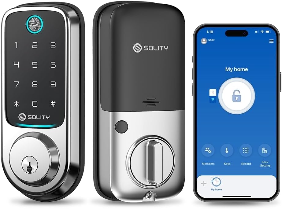 Solity No-Hub Smart Digital Door Lock, Designed in Korea, Keyless Entry, Wi-Fi, Remote Control, Touchscreen Keypad, Auto Lock, IP54 Waterproof GT10BK Biometric