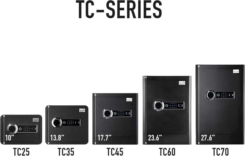 Tenamic Biometric Fingerprint Safe Box 1.41 Cuft Security Box with Induction Light and Leather, Solid Alloy Steel Home Cabinet Safe, Black