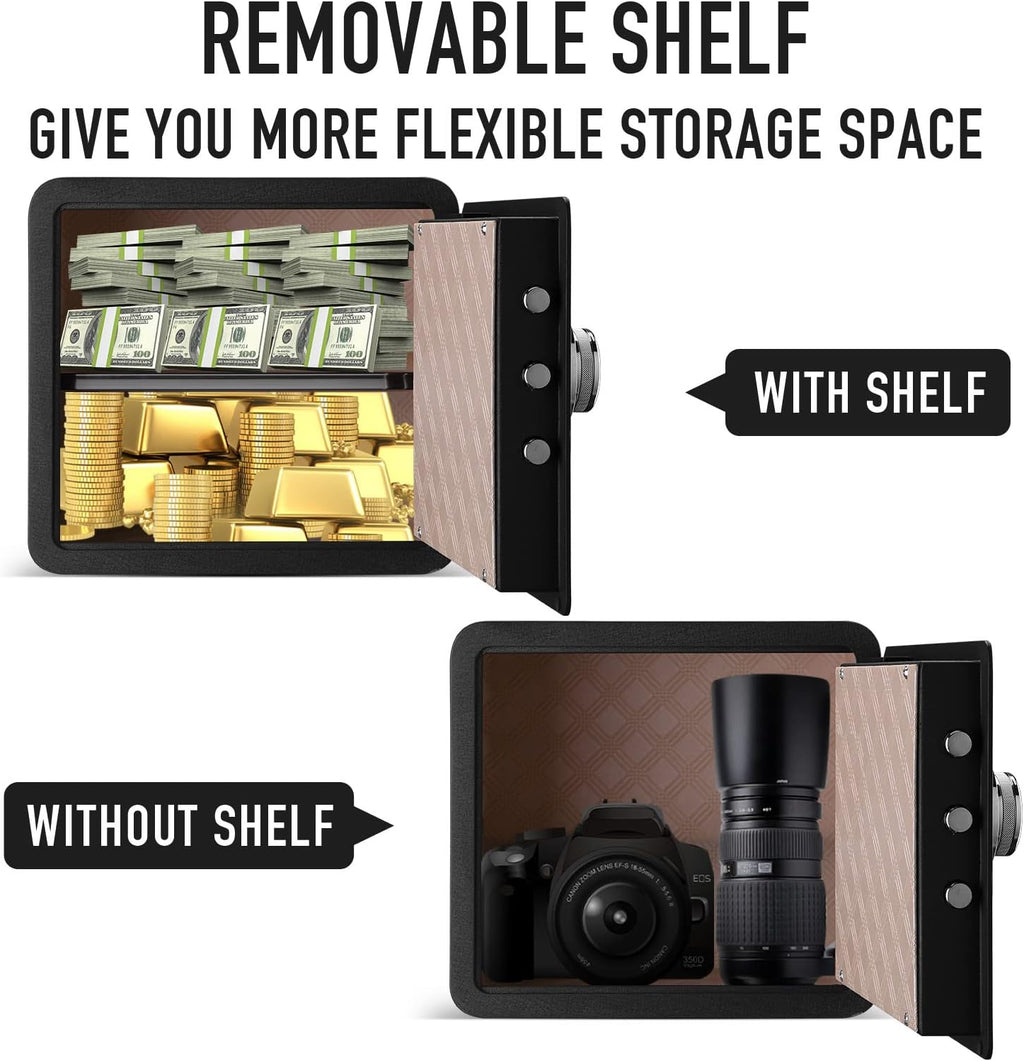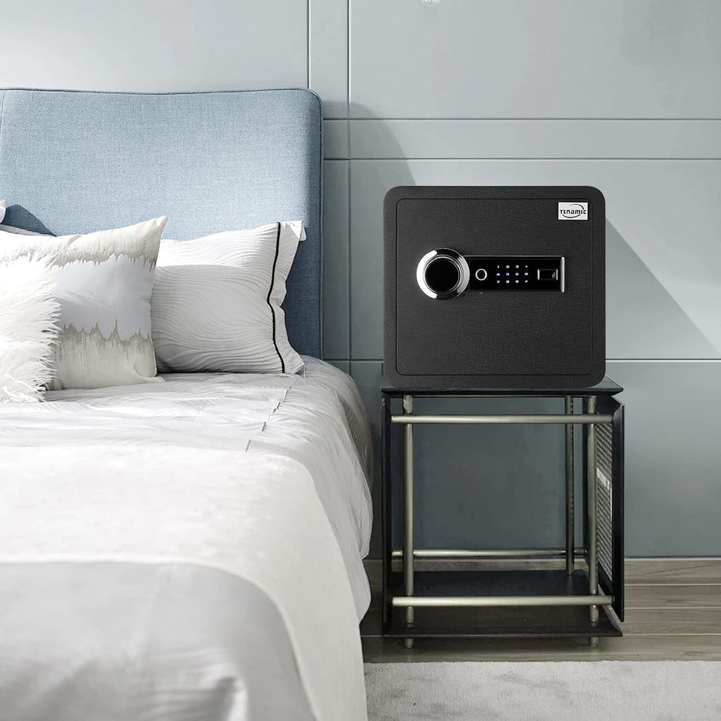 • ✅【STRONGER MATERIAL】: TENAMIC biometric safe box is made of the better solid steel, the surface has anti-corrosion and anti-wear powder coating. This security safe has a pry-resistant steel door and concealed pry-resistant hinges to offer you complete peace of mind. If necessary, you can fix it on the wall. No one can take away the contents of the safe without your permission. The new version of the safe greatly strengthens the packaging.