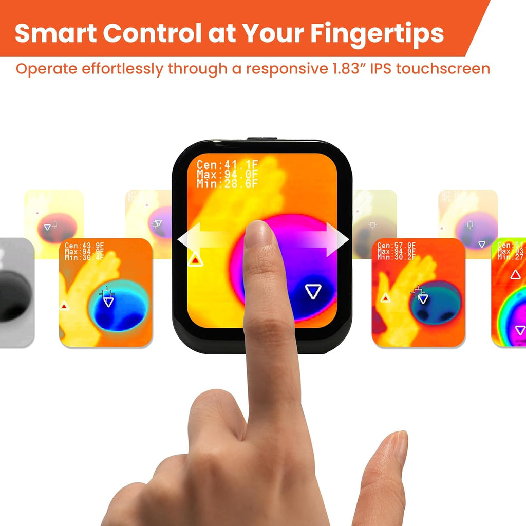 • Clear Thermal Vision in Real Time: Equipped with an 80×60 IR sensor and 9 Hz refresh rate, the camera captures smooth and accurate thermal images. Temperature range spans 14°F–284°F with ±9°F precision, ensuring dependable readings for everyday diagnostics