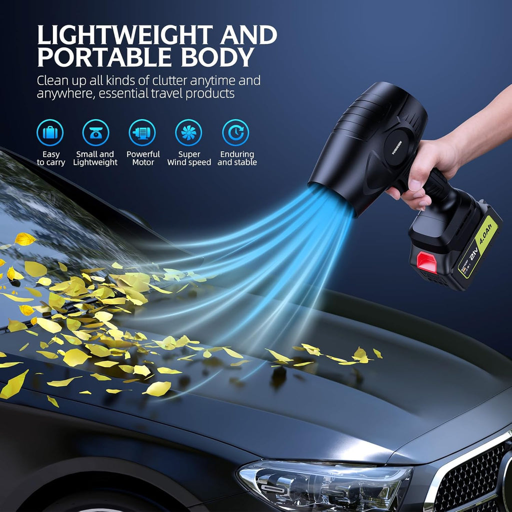 Cordless Leaf Blower 600000RPM - 21V Electric Leaf Blower with 4.0Ah Battery & Charger - Ultra Lightweight Handheld Blower for Patio, Garden, Driveway