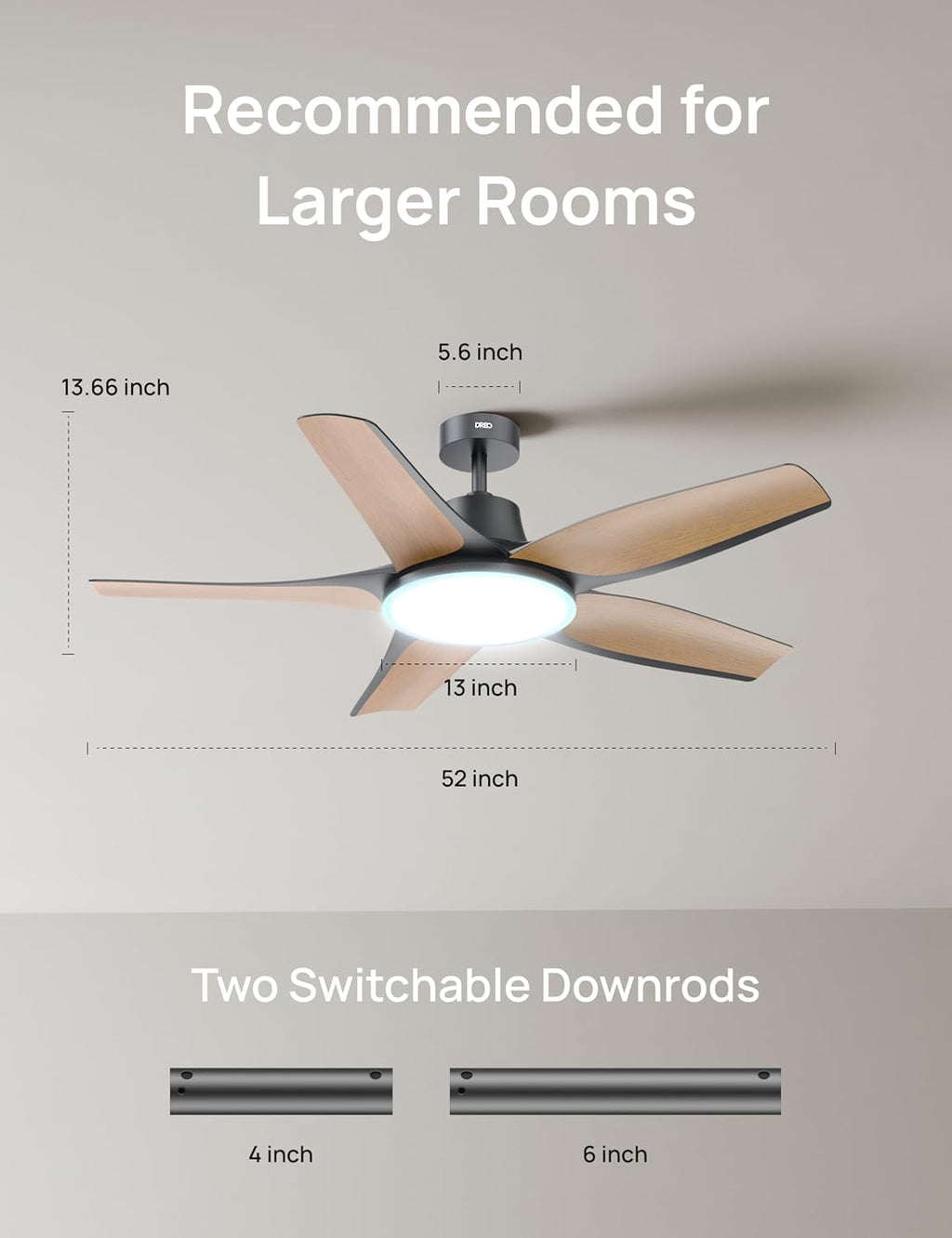 Smart features, smarter comfort: Dreo's app presets and scheduling simplifiy ceiling fan use. The memory function remembers your last settings, with a 12hr timer for convenience. Control fan and lights via Alexa. Reverse airflow easily with remote or app. Perfect for the living room, game room, and more.